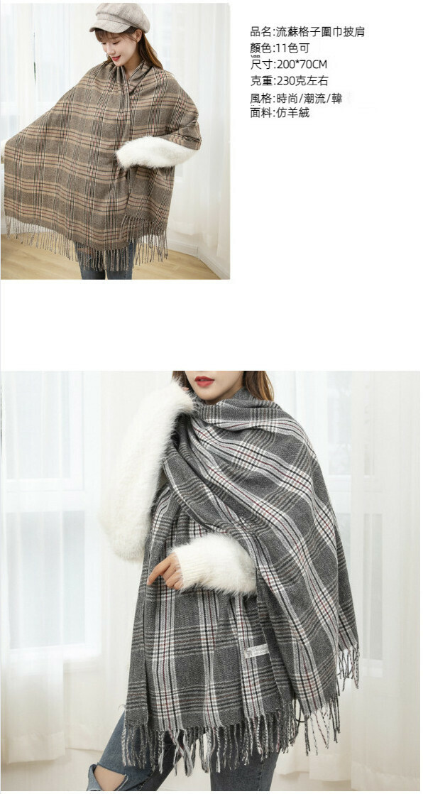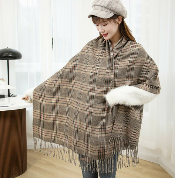 爆款仿羊絨格子圍巾(咖啡黑色方塊組)(尺寸:200*70cm)
