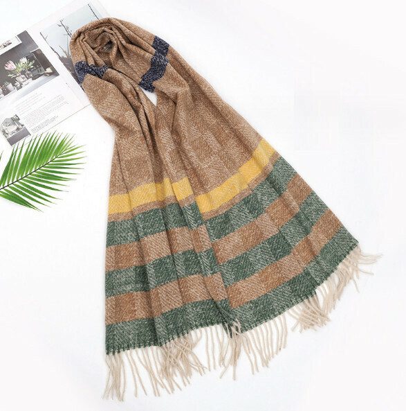 爆款仿羊絨格子圍巾(卡其組)(尺寸:200*60cm)