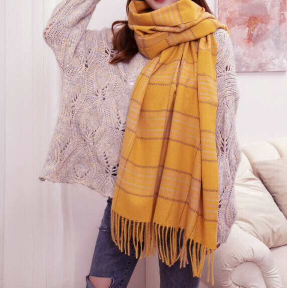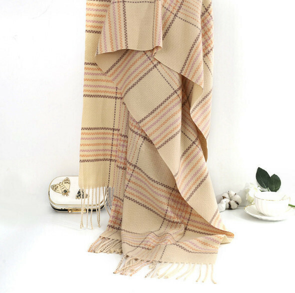 爆款仿羊絨格子圍巾(卡其組)(尺寸:200*70cm)