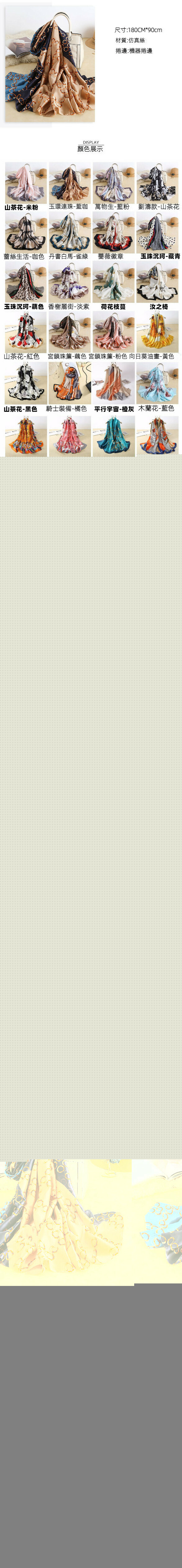 爆款仿真絲長條絲巾(牡丹花卉-藏青色)(尺寸:180*90cm)