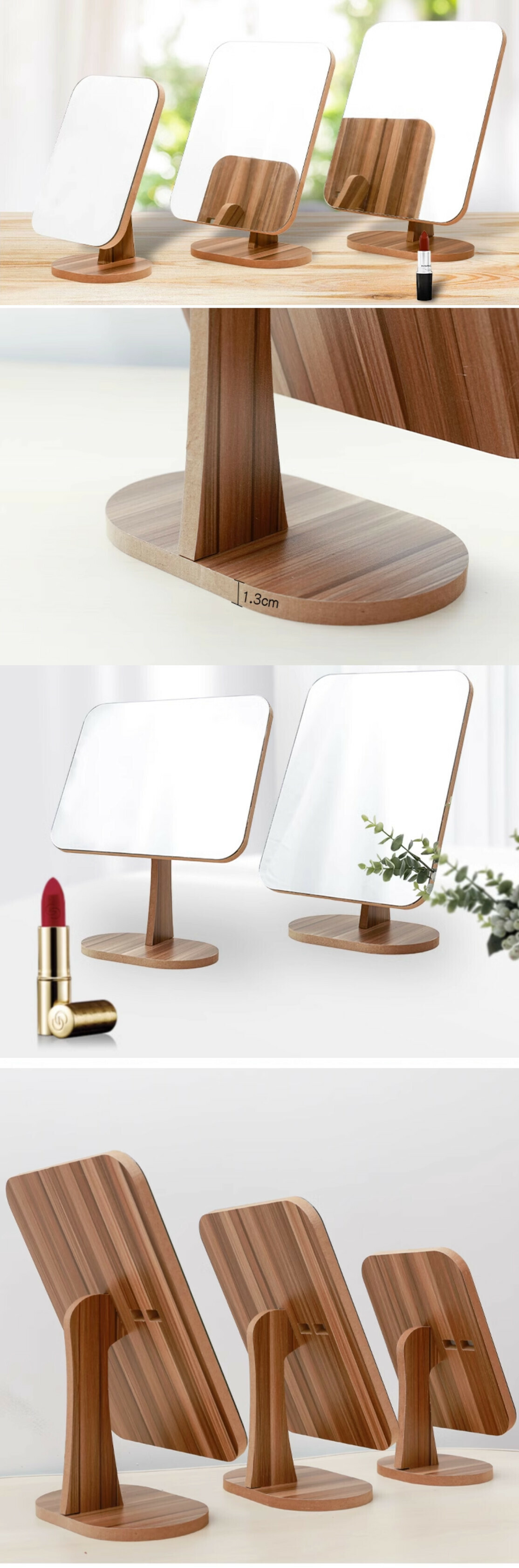 爆款室內桌面化妝鏡座檯鏡【大號-木質化妝鏡】【19*27cm】