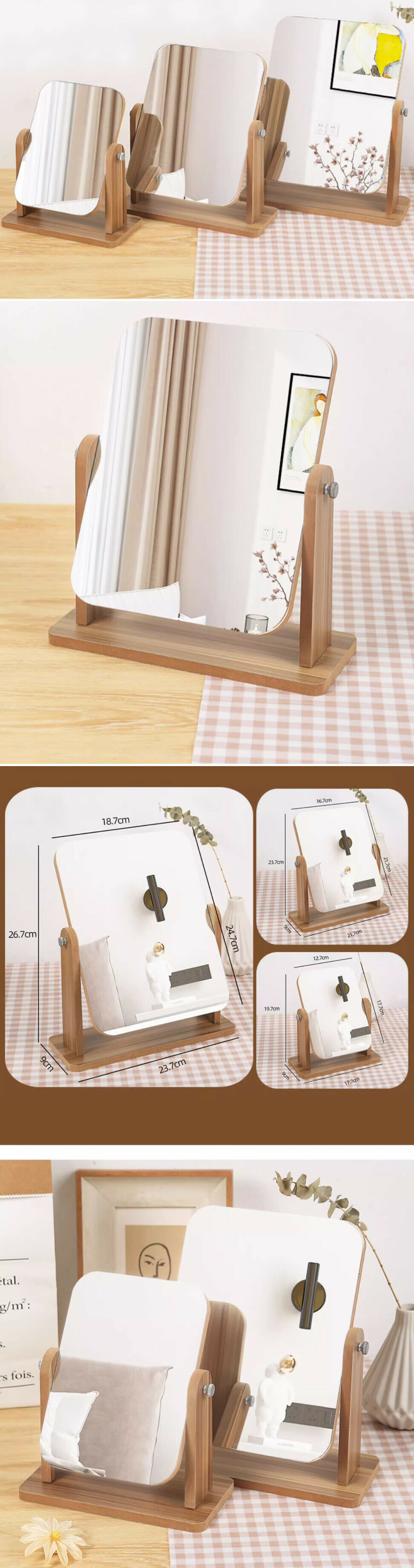 爆款室內桌面化妝鏡座檯鏡【實木旋轉化妝鏡超大號【18.7*24.7cm】】