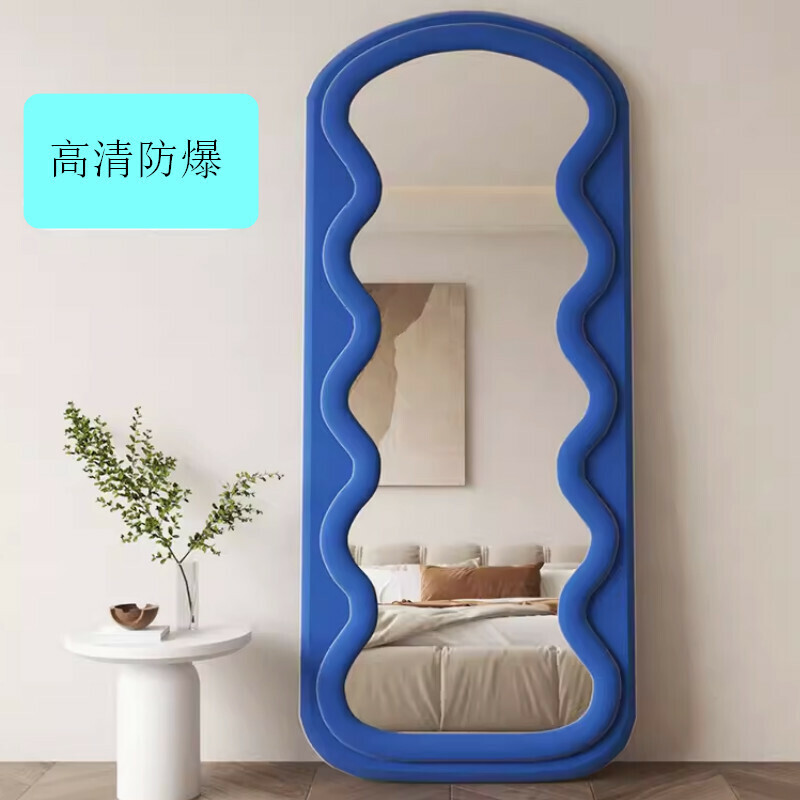 爆款室內落地包邊穿衣全身鏡【克萊因藍內波浪60*160cm】【絨布包邊】
