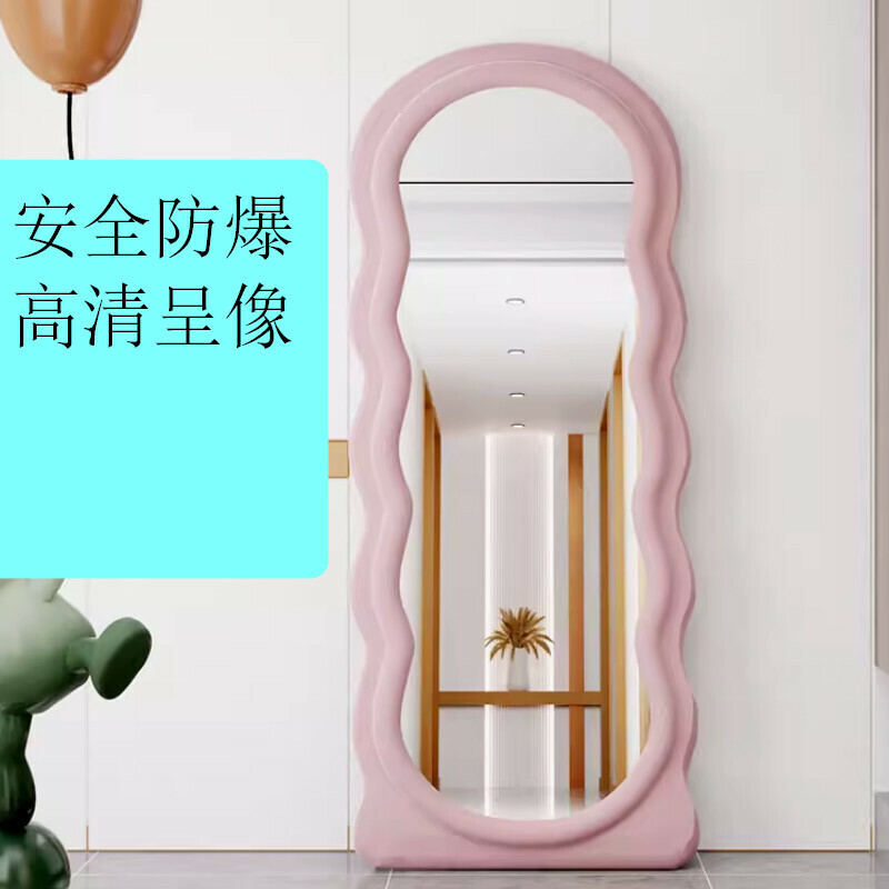 爆款室內落地包邊穿衣全身鏡【奶油粉色70*170cm】【絨布包邊】