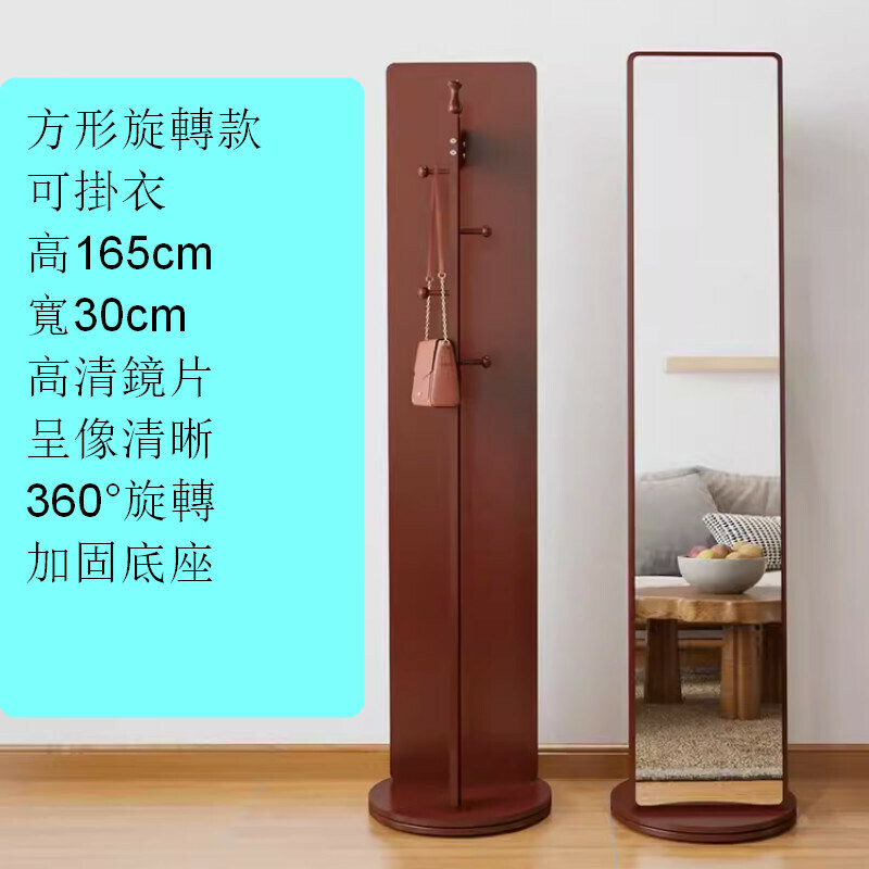 爆款室內落地旋轉穿衣全身鏡【360°旋轉款-方形-帶掛衣架-棕色】【加固加大底座】