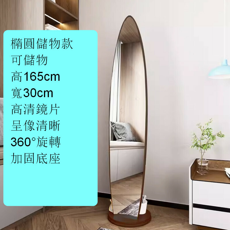 爆款室內落地旋轉穿衣全身鏡【360°旋轉款-橢圓-帶儲物-棕色】【加固加大底座】
