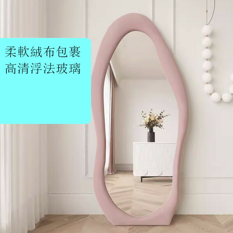 爆款室內落地異形包邊穿衣全身鏡【藕粉色芒果80*180cm】【絨布包邊】
