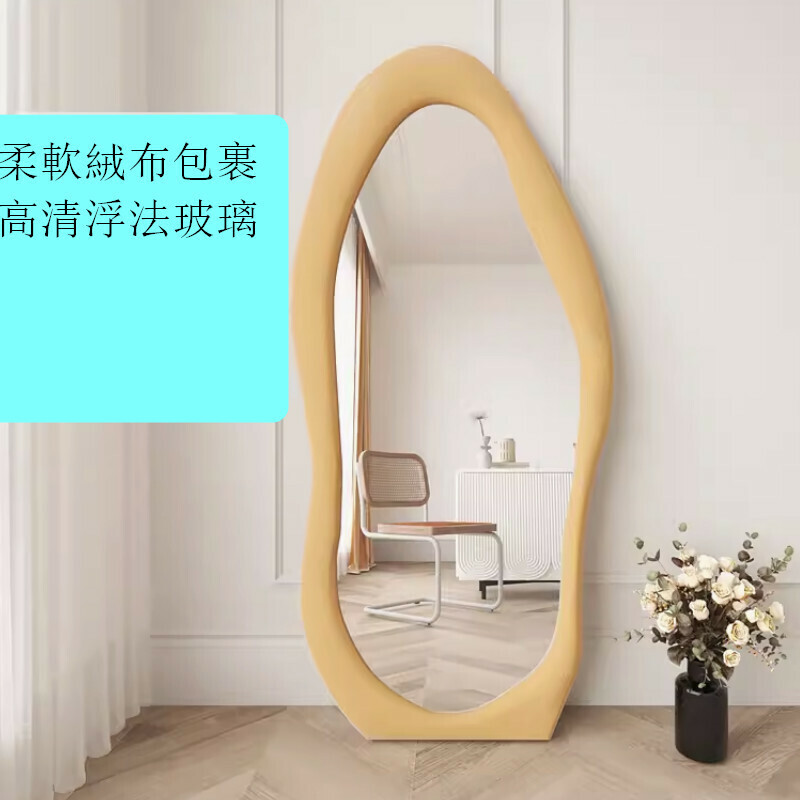 爆款室內落地異形包邊穿衣全身鏡【奶茶色芒果80*180cm】【絨布包邊】