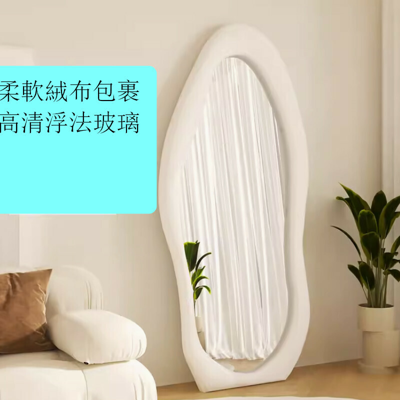 爆款室內落地異形包邊穿衣全身鏡【米白色芒果70*170cm】【絨布包邊】