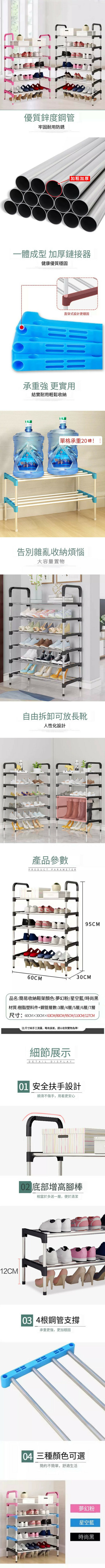 爆款室內簡易防塵鞋櫃宿舍出租屋用收納神器(黑色【5層60-鋼管款】)