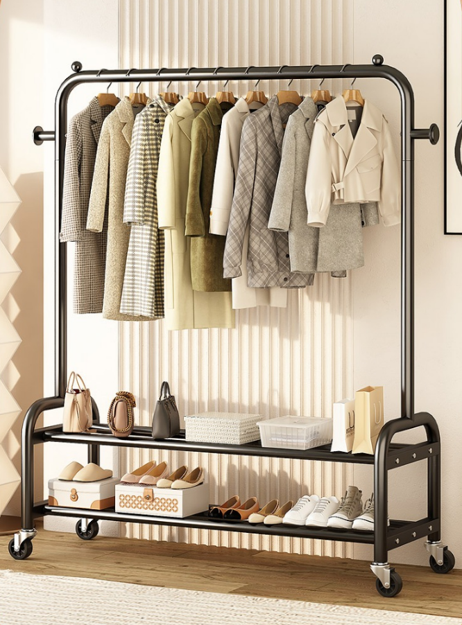 爆款室內帶輪子置物架掛衣架衣帽架(金色單層)(尺寸:150*35*160CM)