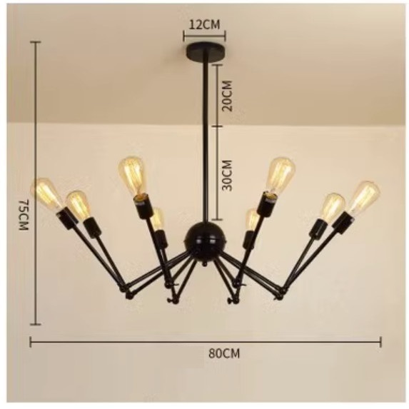 爆款工業風蜘蛛天花燈(8頭黑色蜘蛛燈帶愛迪生燈泡)