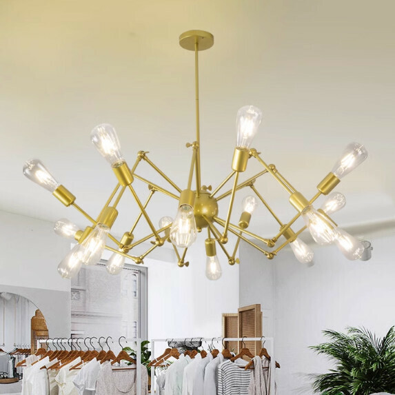 爆款工業風蜘蛛天花燈(金色16頭帶7W燈泡)