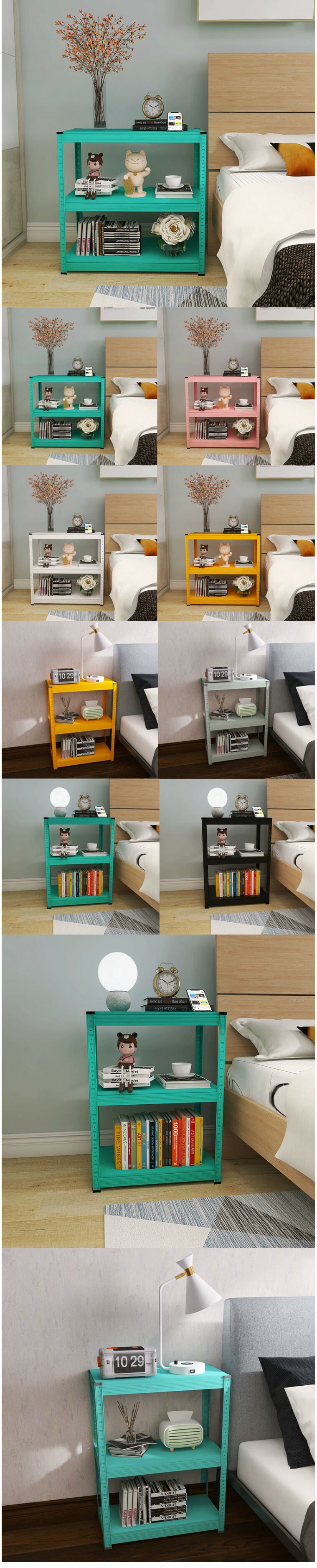 爆款鐵藝色彩 組合櫃 床頭櫃 梳化邊架 厨房架【60x30x80cm】3層 藍色