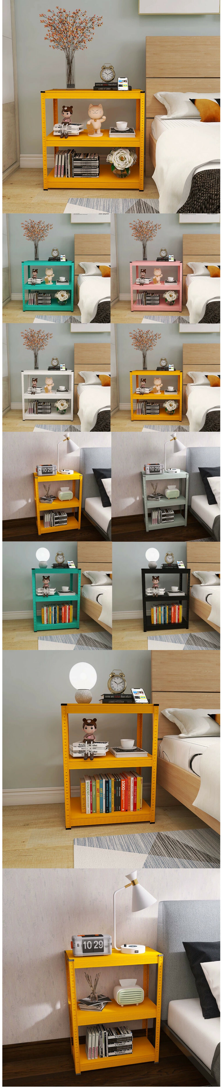 爆款鐵藝色彩 組合櫃 床頭櫃 梳化邊架 厨房架【60x40x80cm】3層 黃色