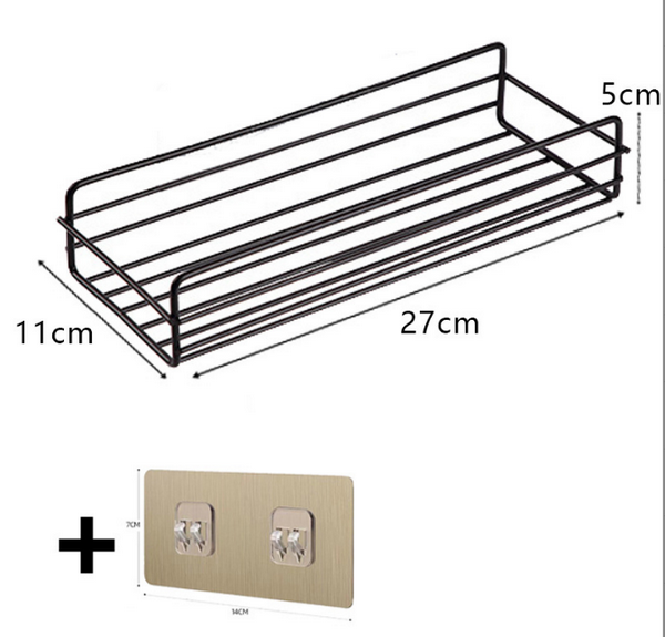 爆款鐵藝多功能衛生間防水不鏽鋼收納架(長方形黑+1個拉絲雙鉤)