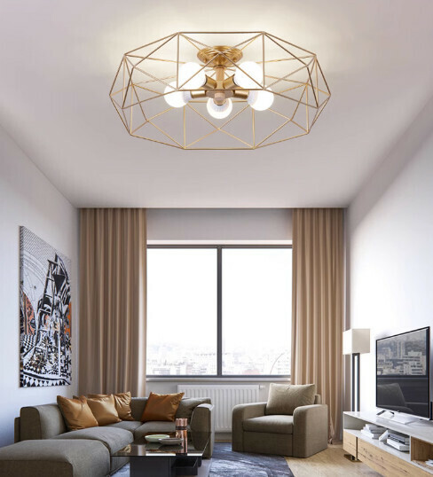 爆款鐵藝簡約燈吸頂(金色9099—6頭)(三色變光)
