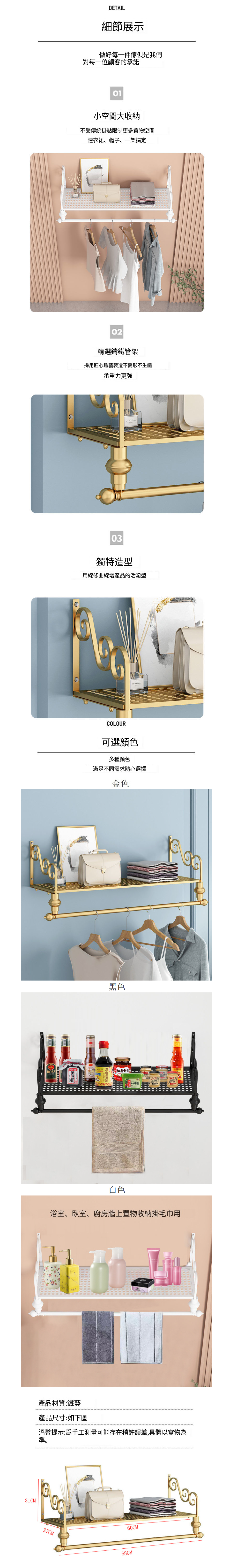 爆款鐵藝牆上置物架浴室毛巾架掛衣架(金色,60*27*31cm)