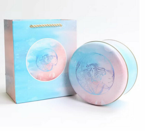 爆款【10個】可愛圓形精緻盒子夢幻天馬-小號套裝(盒子【5.5寸:13.5*7cm】+手提袋)