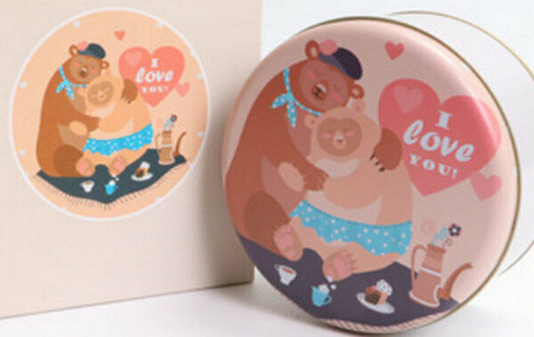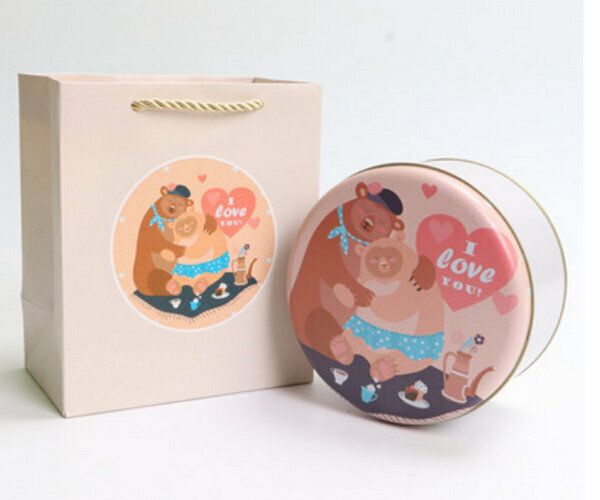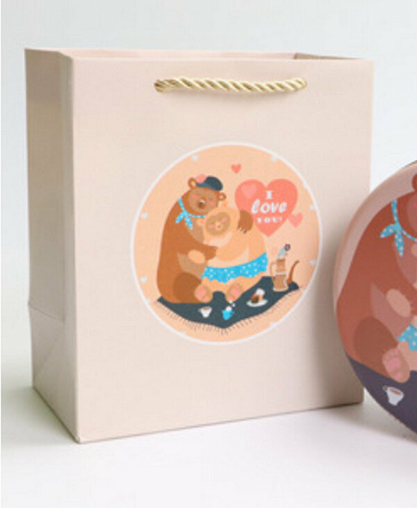 爆款【10個】可愛圓形精緻盒子-愛的抱抱-小號套裝(盒子【5.5寸:13.5*7cm】+手提袋)