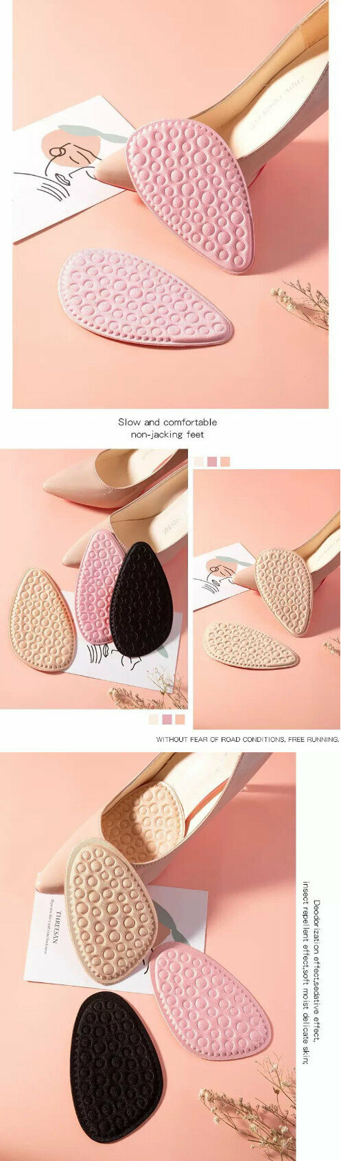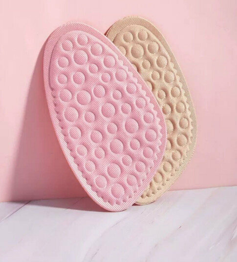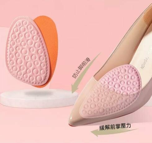 爆款【2雙裝】防滑護腳高跟鞋前腳掌鞋墊(布面粉色-圓頭)【均碼】