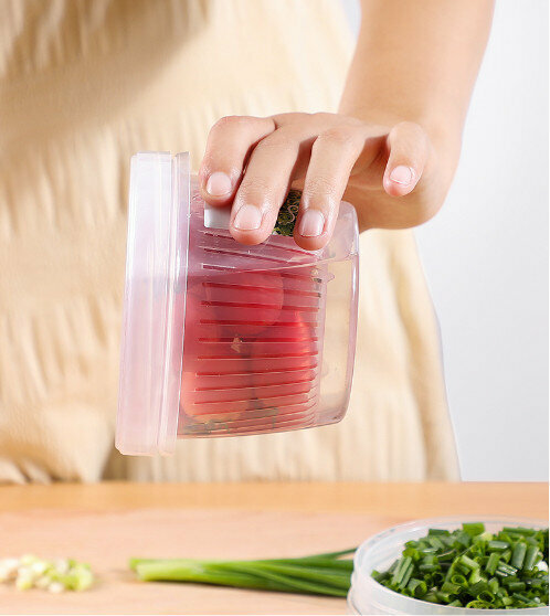 爆款廚房塑膠瀝水保鮮收納盒(圓形500ml)