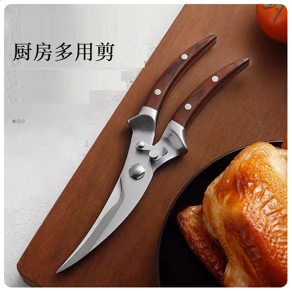 爆款廚房剪刀多功能(雞骨剪:木柄)
