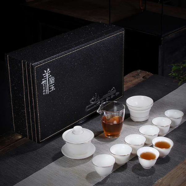 爆款功夫茶具套裝(羊脂玉描金鈴鐺杯)