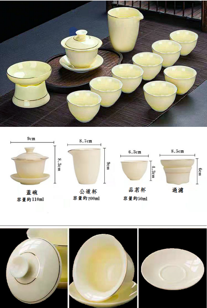爆款功夫茶具套裝(羊脂玉描金高杯禮盒裝)