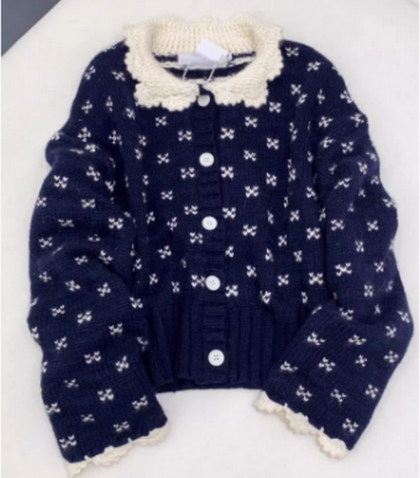 熱推花邊領開衫毛衣針織上衣(均碼)