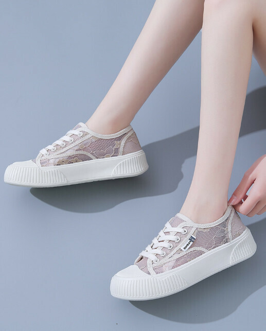 爆款蕾絲厚底透網鞋(卡其色)【35-40碼】【下單後聯絡客服確認發貨尺碼】