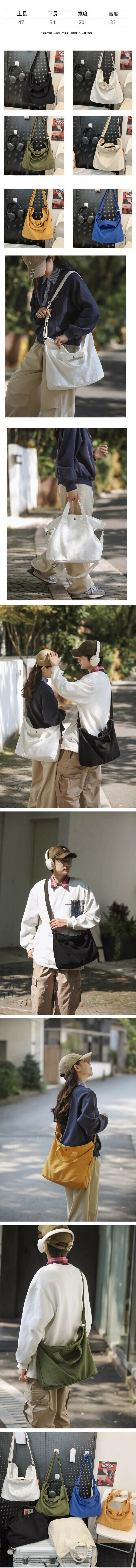 爆款大容量慵懶風斜挎包 帆布單肩手提包(米色)