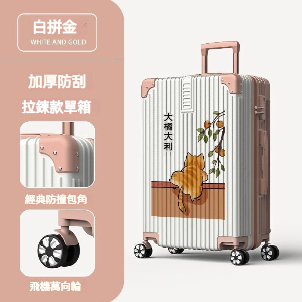 爆款大容量拉杆行李箱【26寸】【1520拉鍊款-白拼黑】
