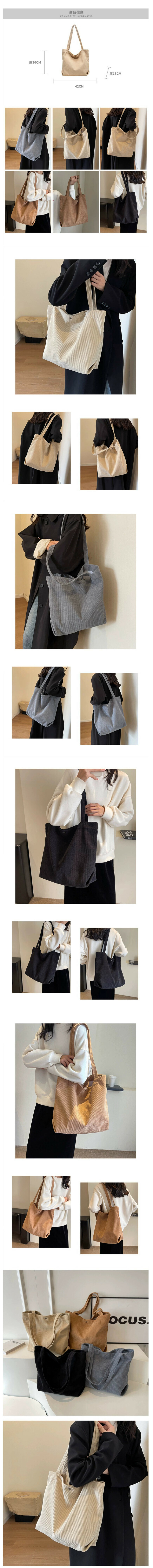 熱推大容量百搭休閒單肩包 燈芯絨手提包(米白色)