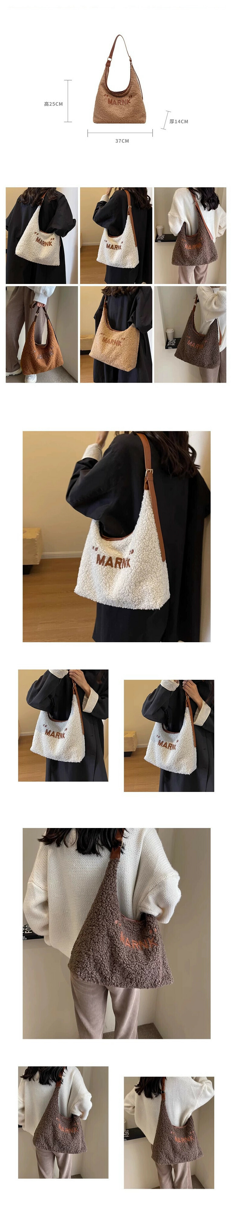 熱推大容量百搭休閒單肩包 仿羊羔毛手提包(米色)