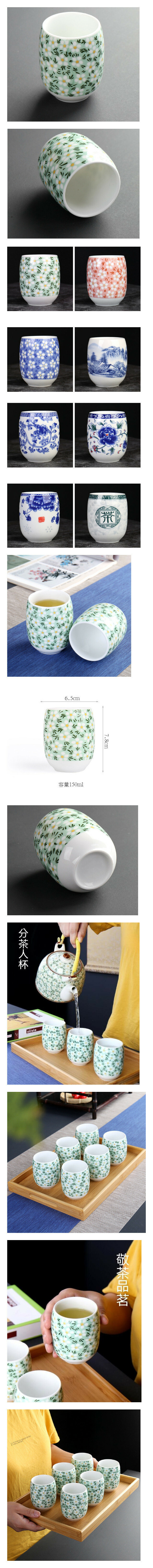 爆款大號單個陶瓷茶杯(橢圓150ml藍山水杯)