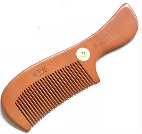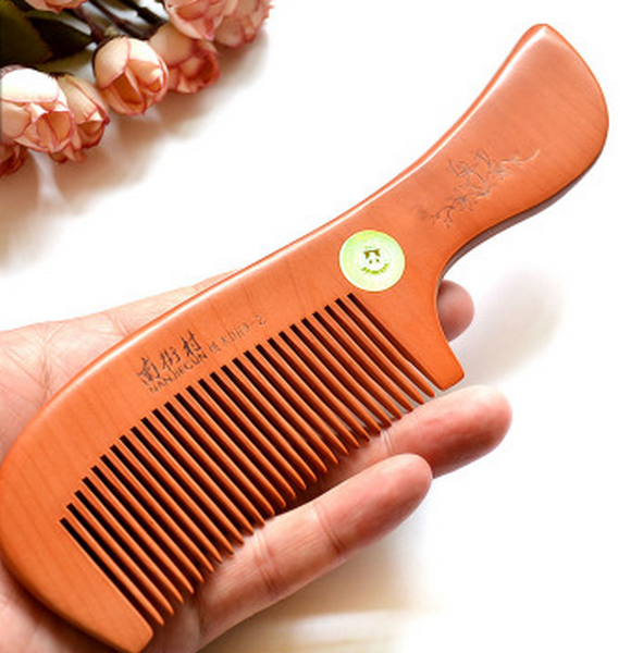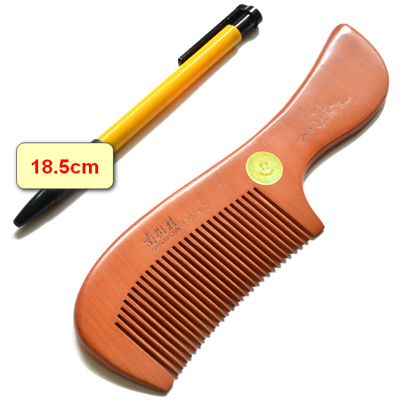 爆款大號有柄密齒桃木梳子(布袋包裝)約18.5釐米