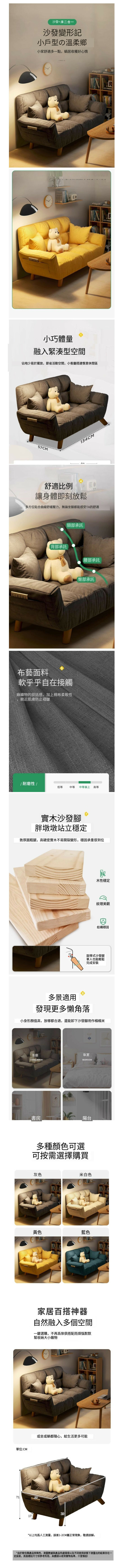 爆款懶人沙發榻榻米躺椅【檸檬黃色/帶腿/雙人位118CM+送抱枕】