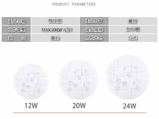 爆款LED吸頂燈【超薄如意款高亮12W】【25cm*4cm】