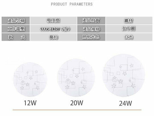 爆款LED吸頂燈【超薄如意款高亮24W】【35cm*4cm】