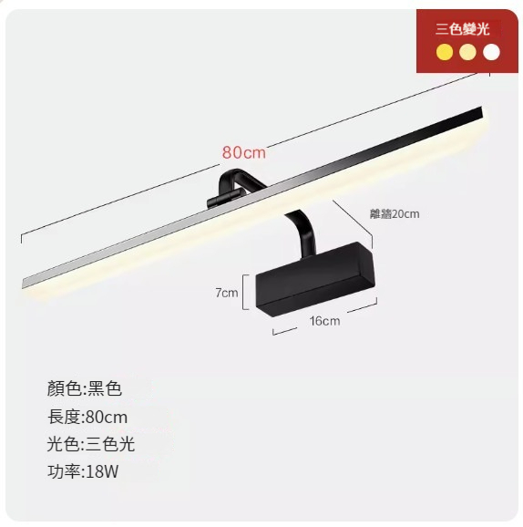 爆款led免打孔壁燈【40CM金色款-三色調光9W】