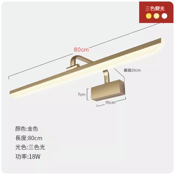 爆款led免打孔壁燈【60CM金色款-三色調光14W】