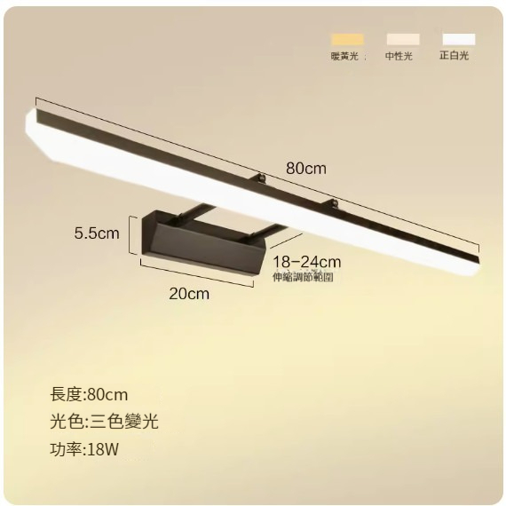 爆款led免打孔壁燈【伸縮款-50CM-12W三色變光(黑色)】