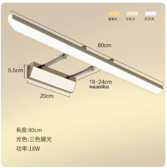 爆款led免打孔壁燈【伸縮款-60CM-14W三色變光(銀色)】