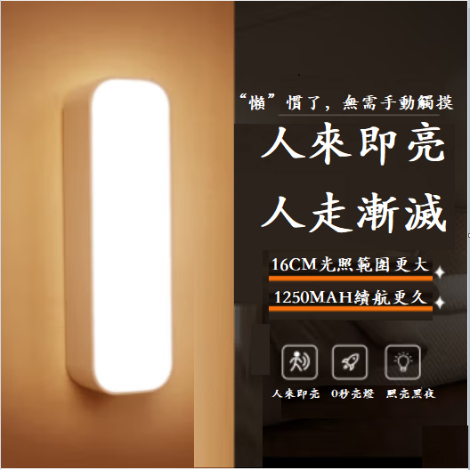 爆款led充電小夜燈(人體感應燈暖光款+1250mAh+16CM)