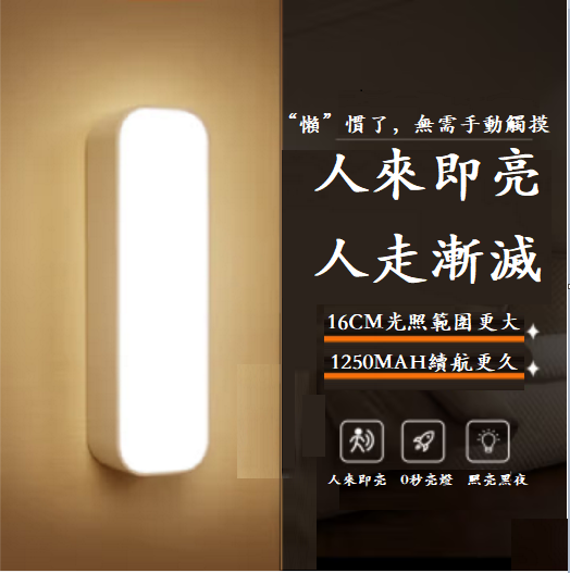 爆款led充電小夜燈(人體感應燈白光款+1250mAh+16CM)