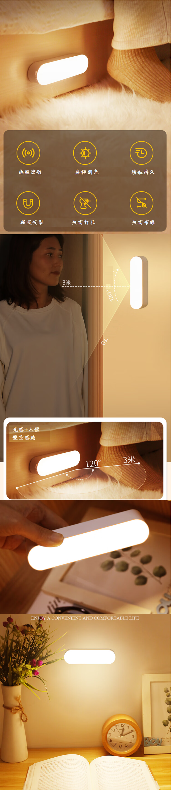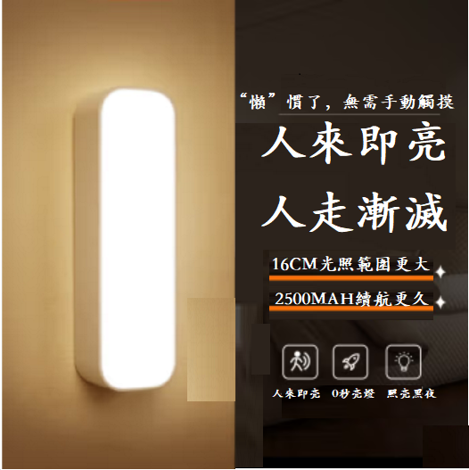 爆款led充電小夜燈(人體感應燈白光款+2500mAh+16CM)