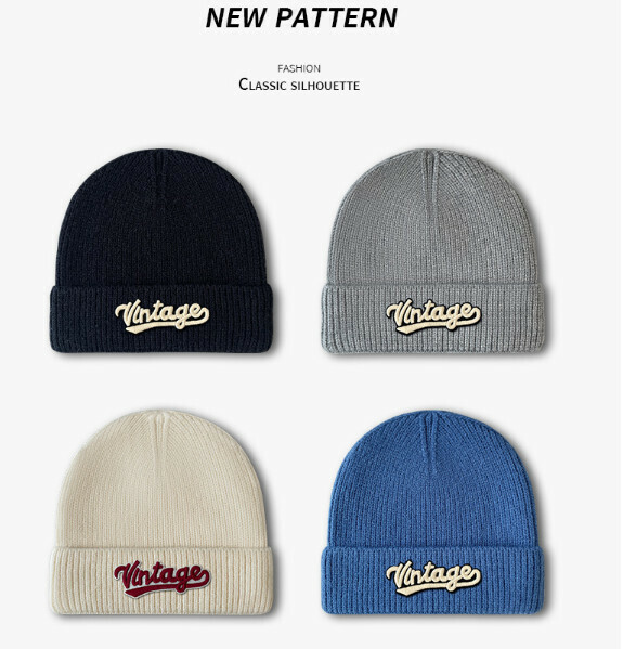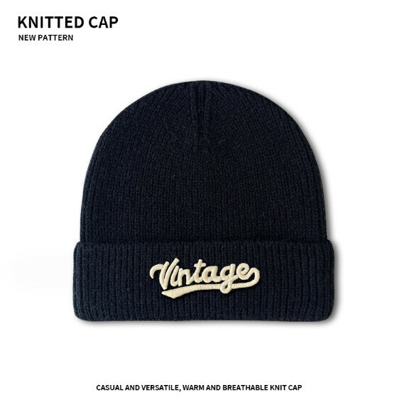 爆款字母刺繡包頭針織帽(A-486黑色)