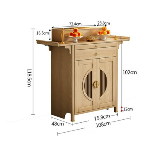 爆款輕奢佛龕 供桌佛臺 財神爺佛櫃 中式立櫃帶門神龕【實木款】原木色 供桌 108x48x118.5cm
