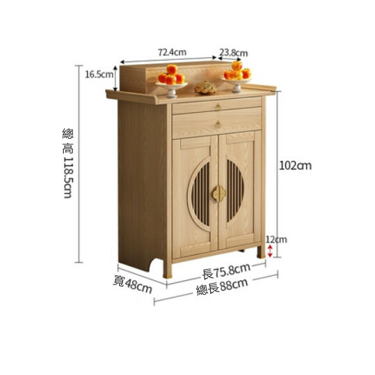 爆款輕奢佛龕 供桌佛臺 財神爺佛櫃 中式立櫃帶門神龕【實木款】原木色 供桌 88x48x118.5cm
